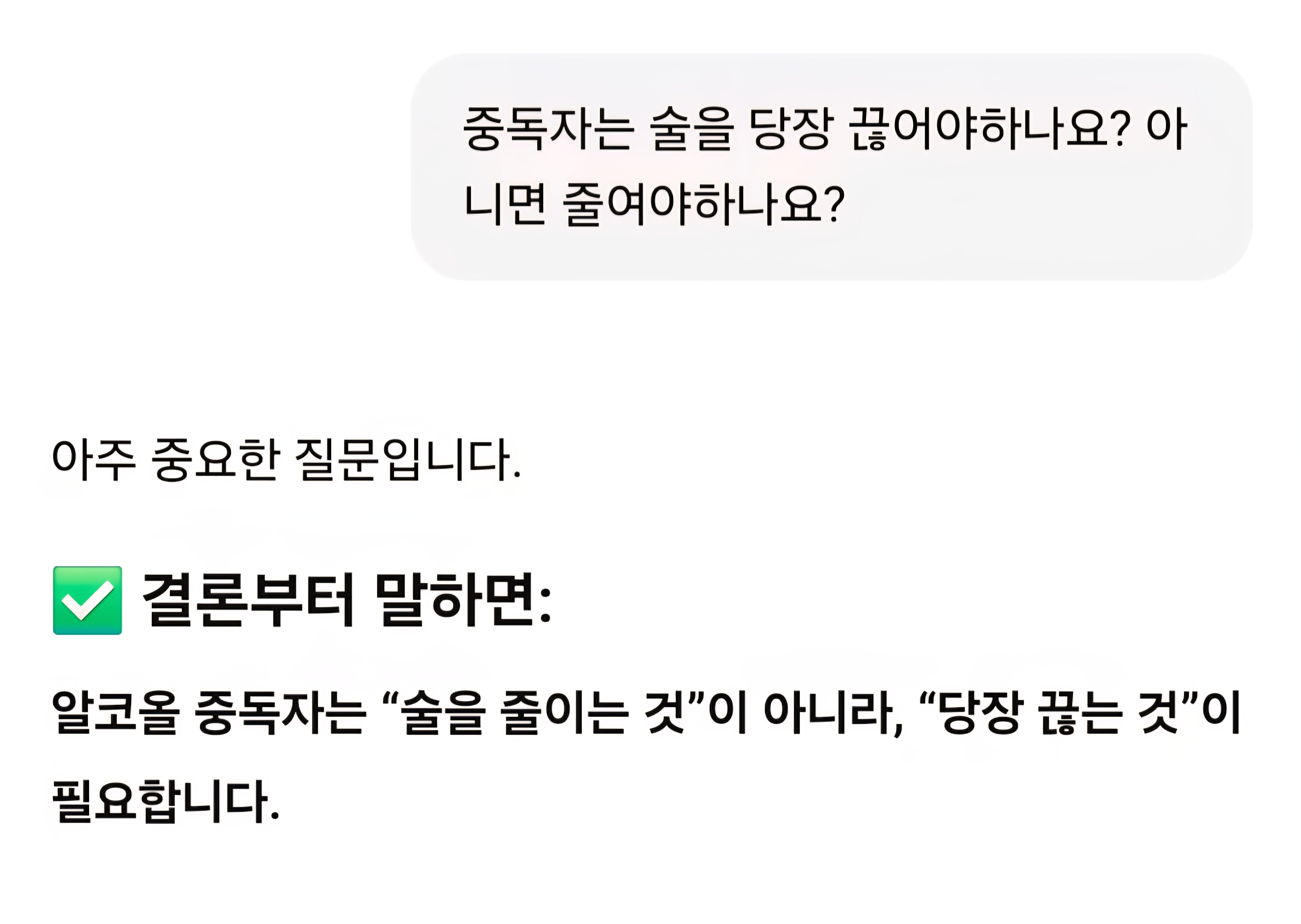 < GPT의 답변 캡처: 알코올 중독과 미디어 중독은 중독이란 부분에서 같은 선상에 있다고 보았기 때문>