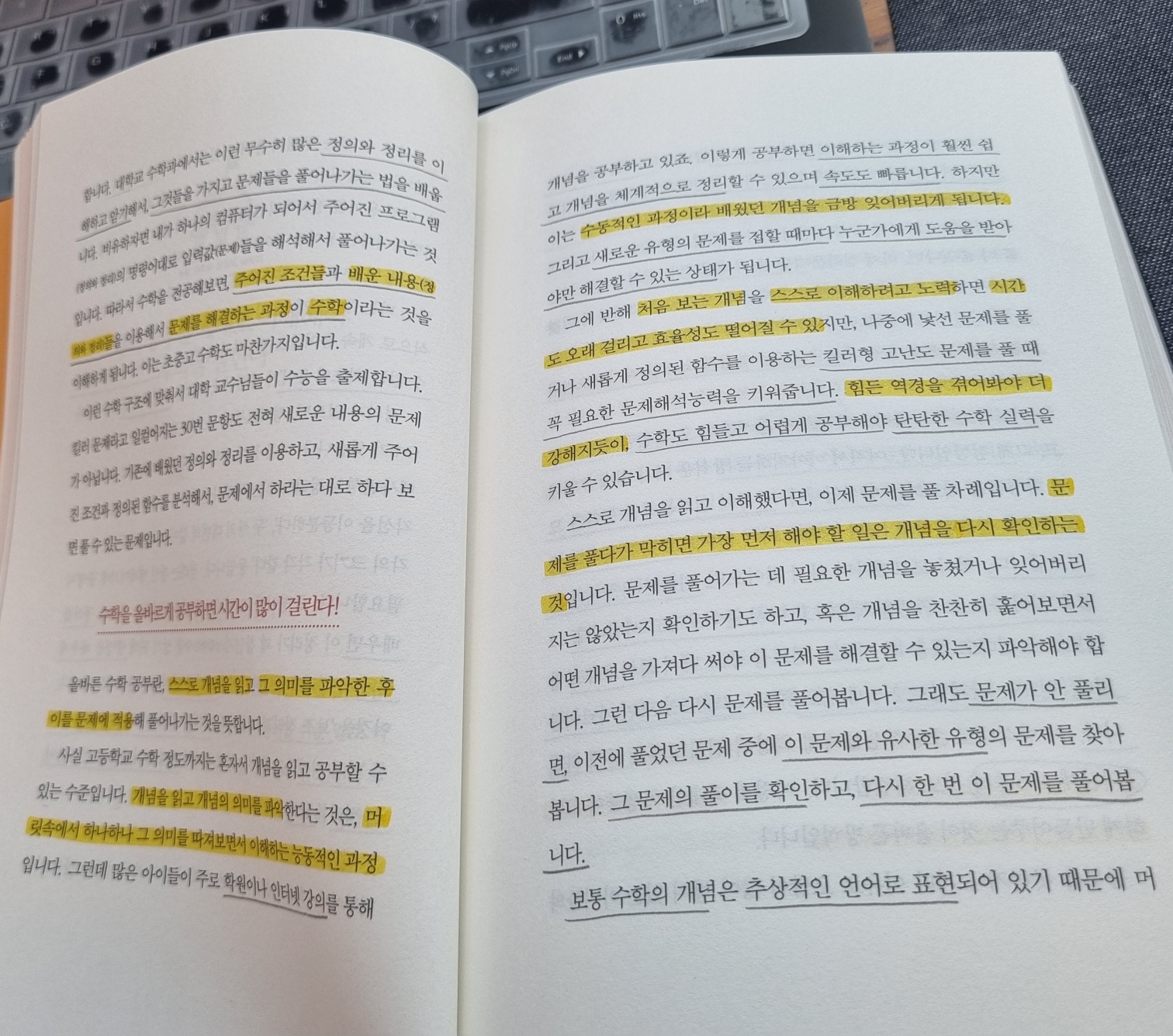 이 책의 사례를 통해 나는 글을 읽는 것에 대한 아주 큰 개혁적인 변화가 생겼다. 항상 뭔가 쫓기는 듯이 책을 있고, 비교를 하게 되고, 활자에 집중했던 나에게 말이다. 어떤 아이가 심화를 그렇게 열심히 잘 끝냈는데도 '문제해결력'이 길러지지 않았다는 것이다. 공부의 방법이 잘못되어서 말이다. (해설지를 바로 보고 풀어서) '헐, 이럴 수가 있구나!' 뭐가 됐든지 열심히만 하면 될 줄 알았는데, 헛된 땀이 될 수 있다는 사실에 놀라움을 금치 못했다.